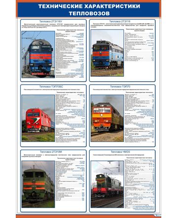 Плакат: Технические характеристики тепловозов (600 х 900 мм, ламинированный, с пластиковым профилем и стальным крючком)