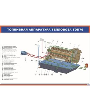 Плакат: Топливная аппаратура тепловоза ТЭП70 (900 х 600 мм, ламинированный, с пластиковым профилем и стальным крючком)