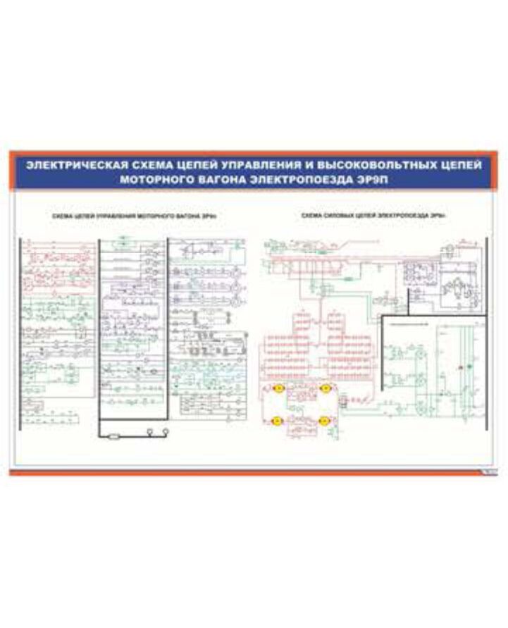Плакат: Электрическая схема цепей управления и высоковольтных цепей моторного вагона электропоезда ЭР9п (900 х 600 мм, ламинированный, с пластиковым профилем и стальным крючком)