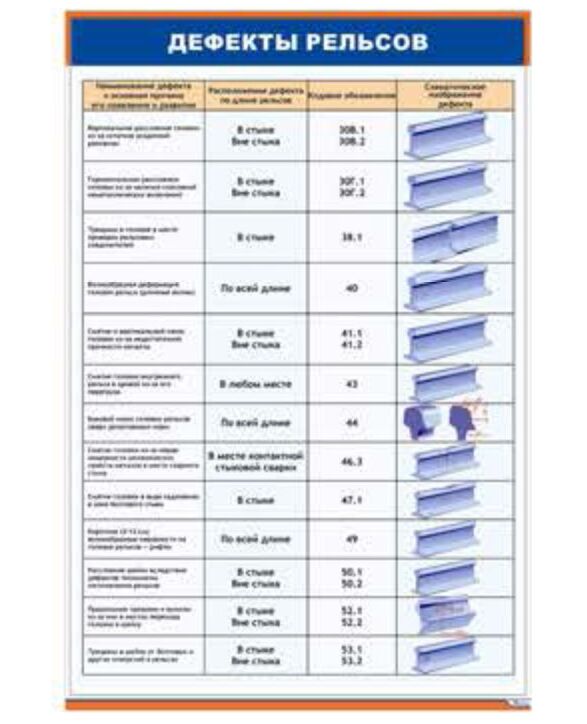 Дефекты рельсов 1/1 (600 х 900 мм, ламинированный, с пластиковым профилем и стальным крючком)