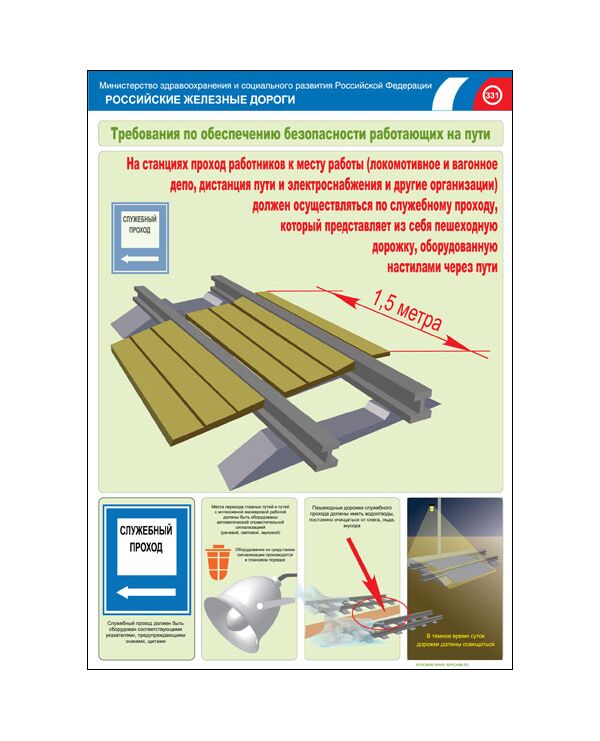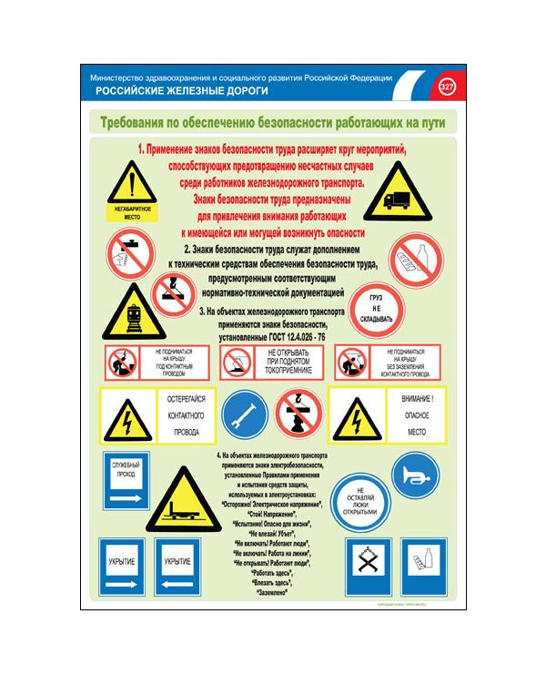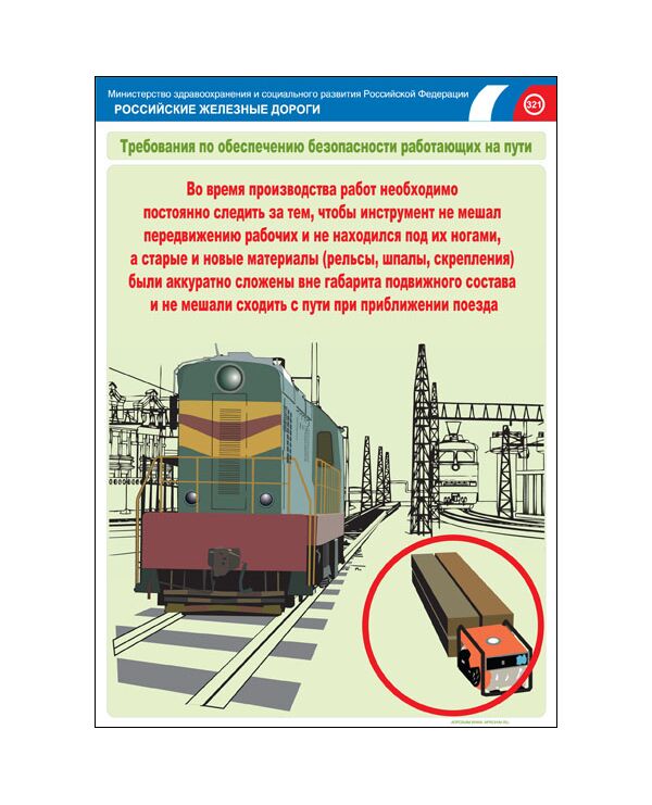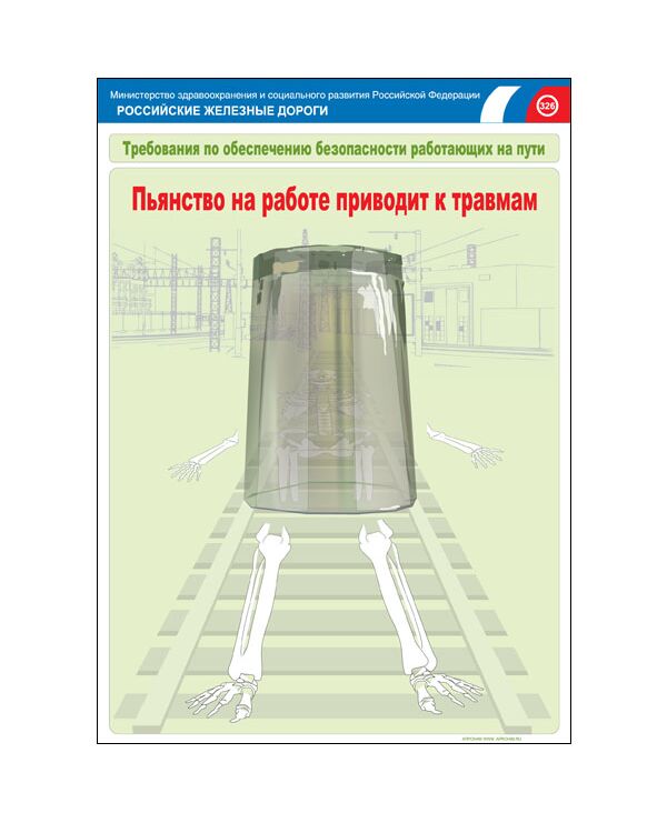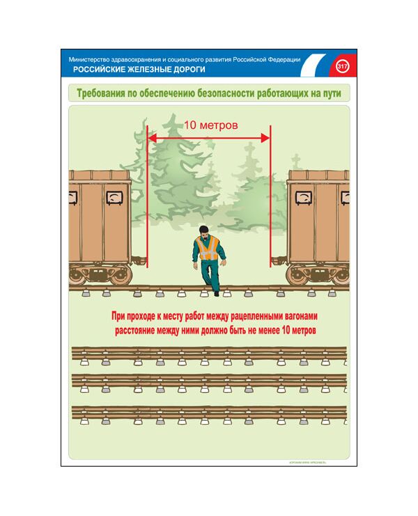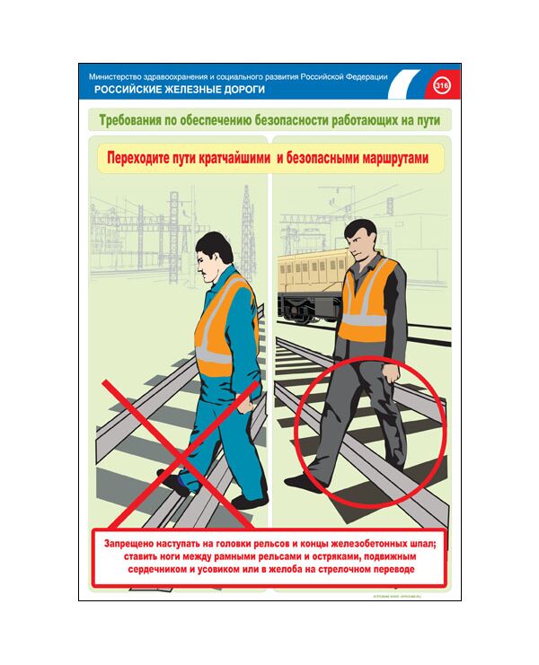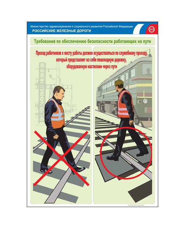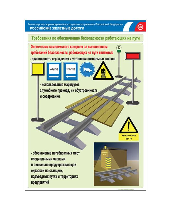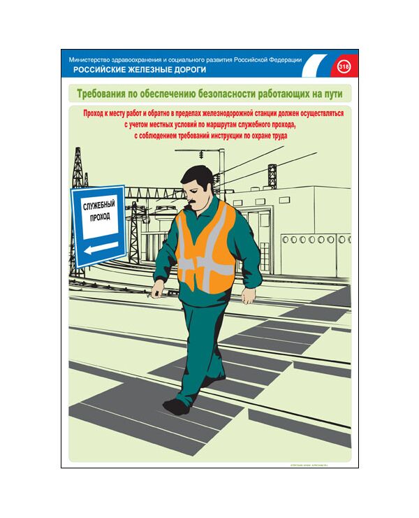 Комплект плакатов: Безопасность работающих на железнодорожном пути, 20 штук, формат А3, размер 297 x 420, ламинированные
