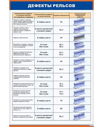 Плакат: Дефекты рельсов 1/3 (600 х 900 мм, ламинированный, с пластиковым профилем и стальным крючком)