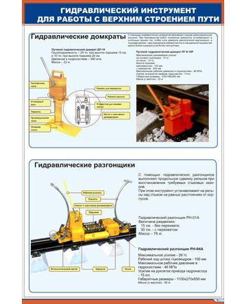 Плакат: Гидравлический инструмент для работы с верхним строением пути. Домкраты и разгонщики (600 х 900 мм, ламинированный, с пластиковым профилем и стальным