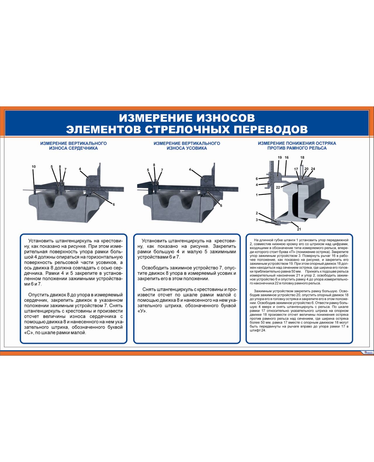 Плакат: Измерение износов элементов стрелочных переводов (600 х 900 мм, ламинированный, с пластиковым профилем и стальным крючком)