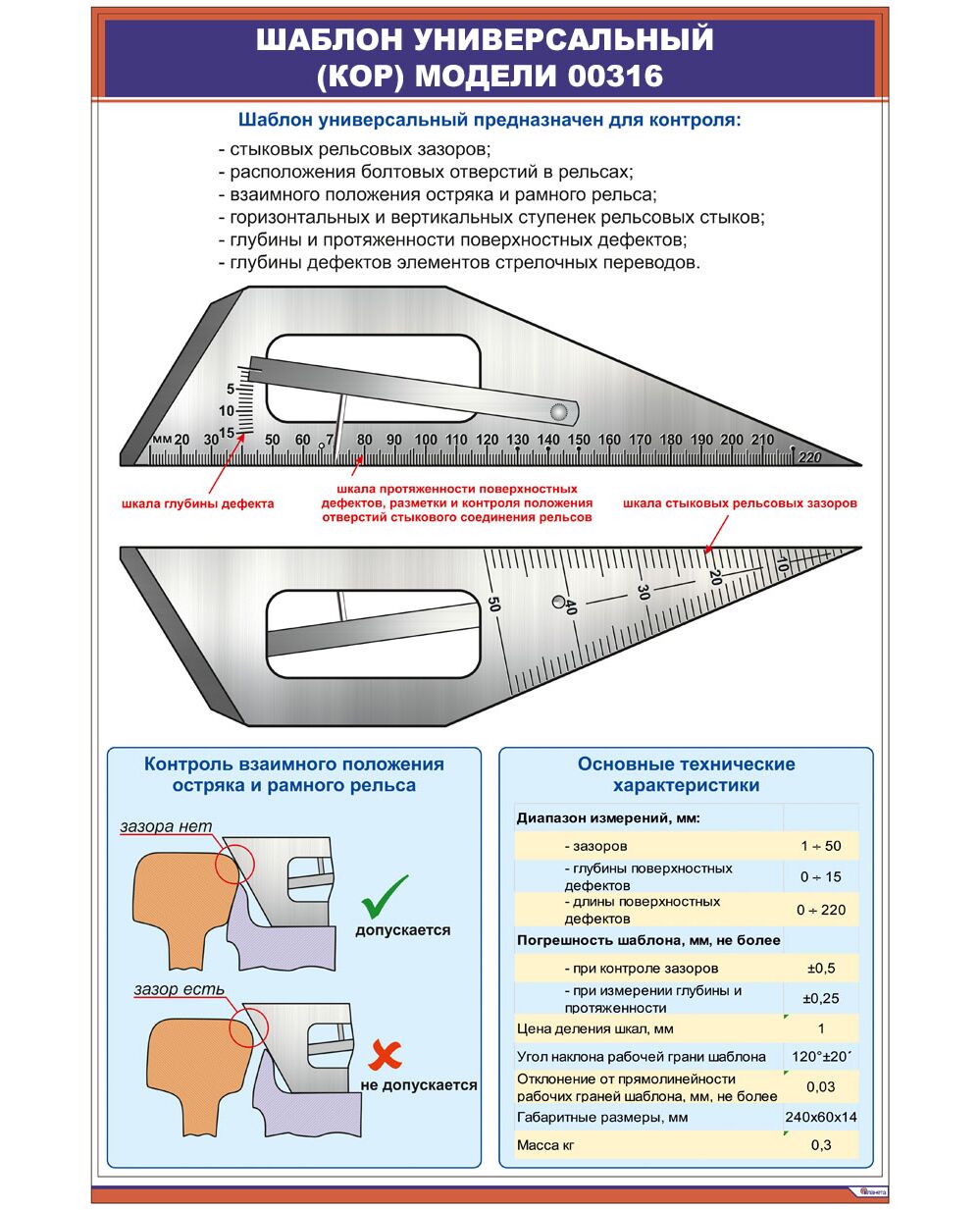 Плакат: Измерительный инструмент. Шаблон универсальный (КОР) модели 00316 (600 х 900 мм, ламинированный, с пластиковым профилем и стальным крючком)