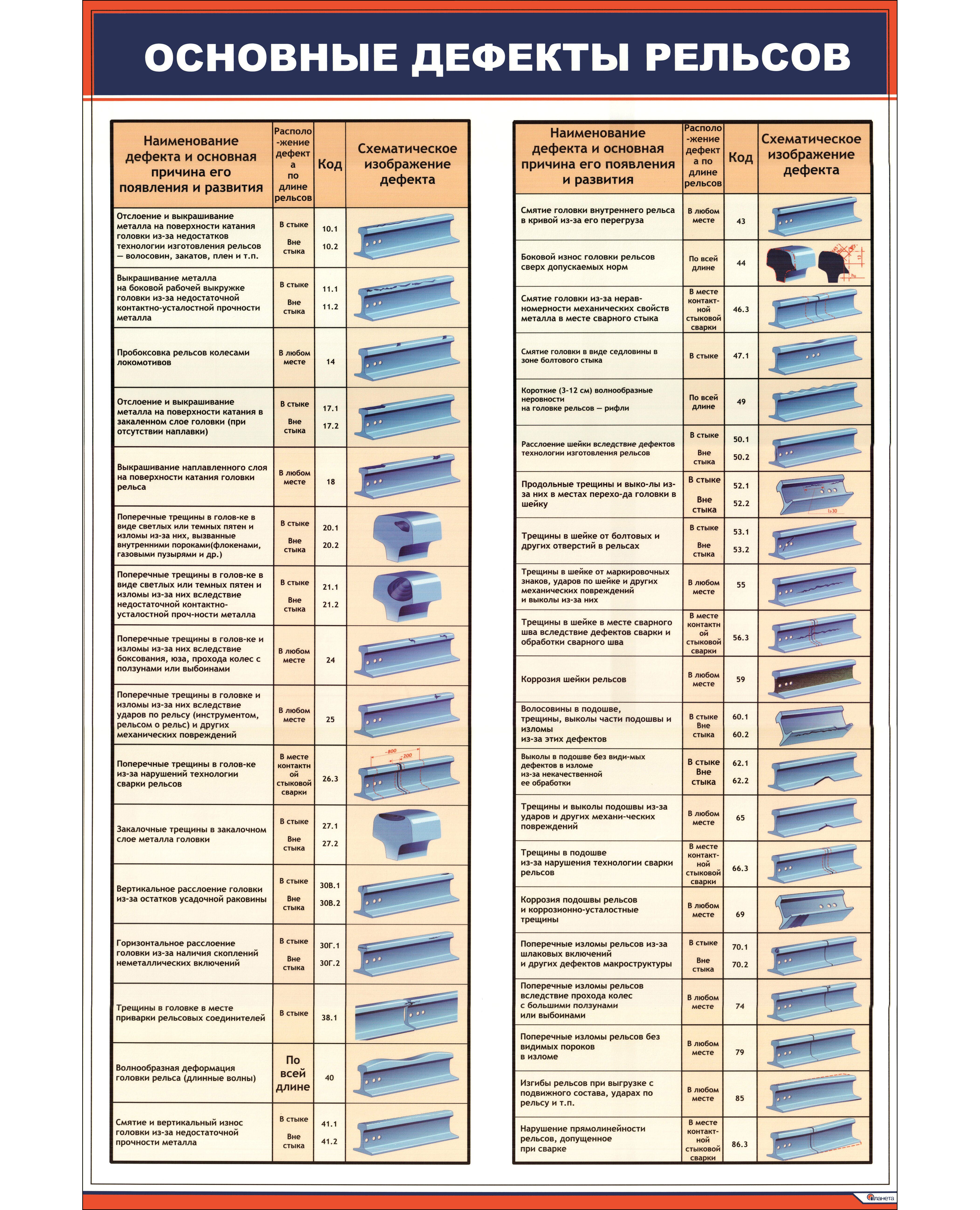 Плакат: Основные дефекты рельсов (600 х 900 мм, ламинированный, с пластиковым профилем и стальным крючком)