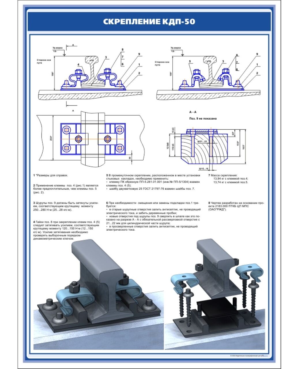 Плакат: Рельсовое скрепление КДП-50 (600 х 900 мм, ламинированный, с пластиковым профилем и стальным крючком)