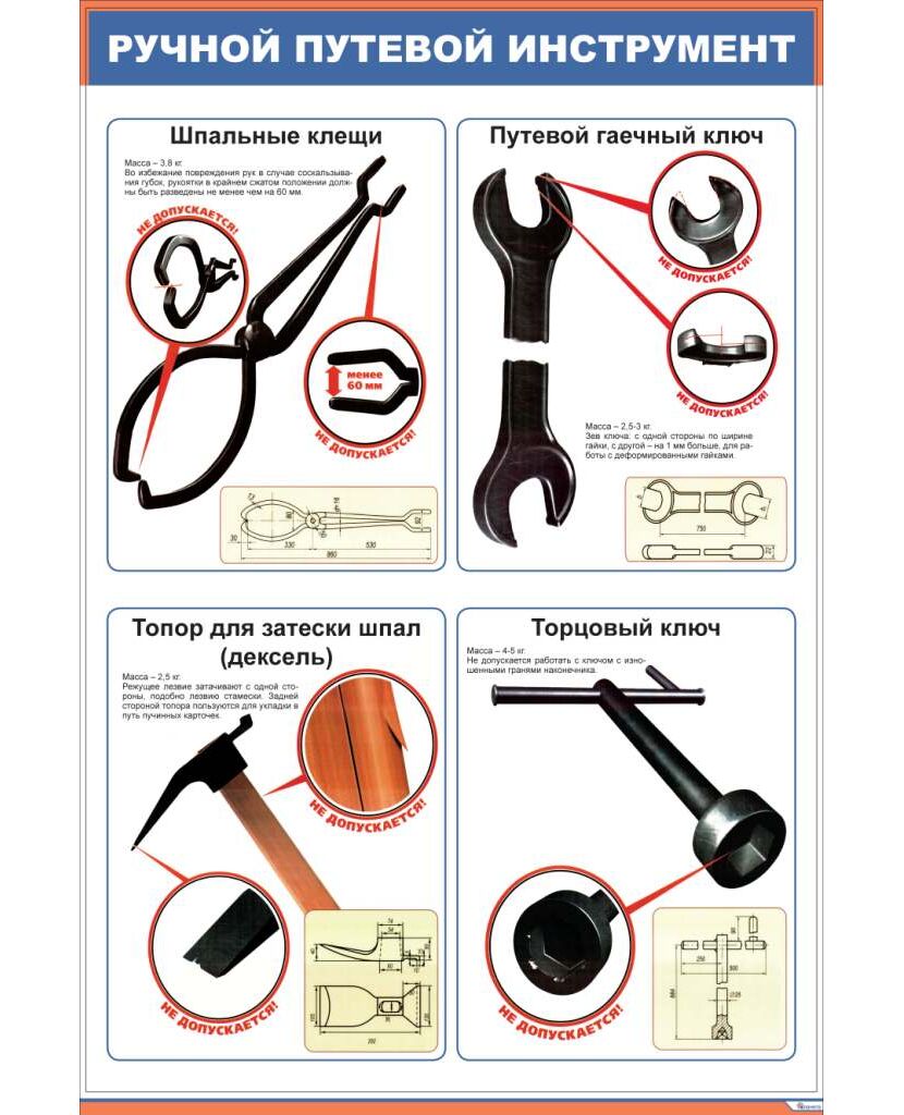 Плакат: Ручной путевой инструмент. Шпальные клещи (600 х 900 мм, ламинированный, с пластиковым профилем и крючком)