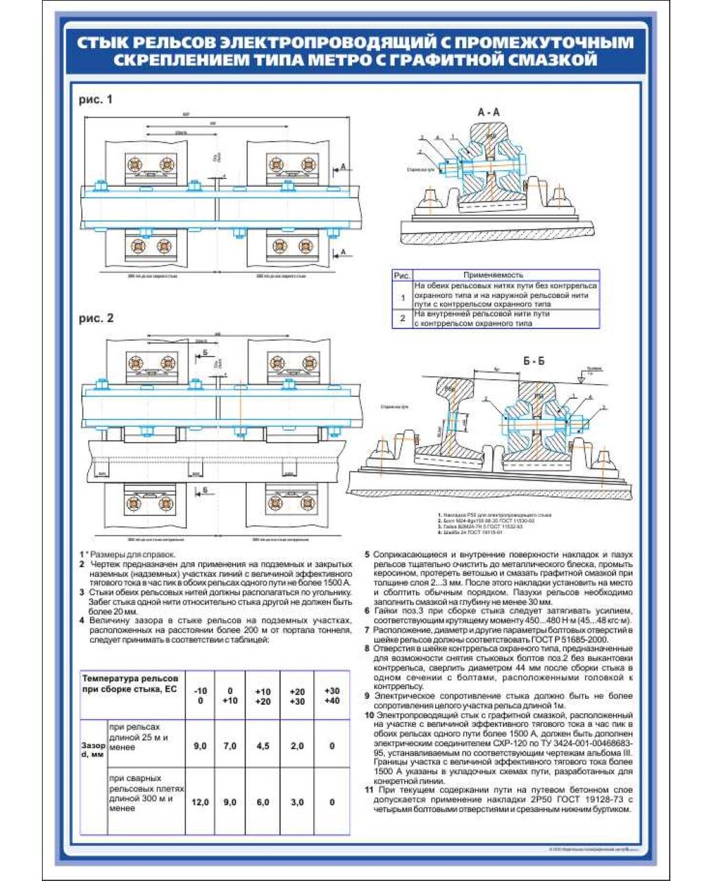 Плакат: Стык электропроводящий со скреплением типа Метро (600 х 900 мм, ламинированный, с пластиковым профилем и стальным крючком)