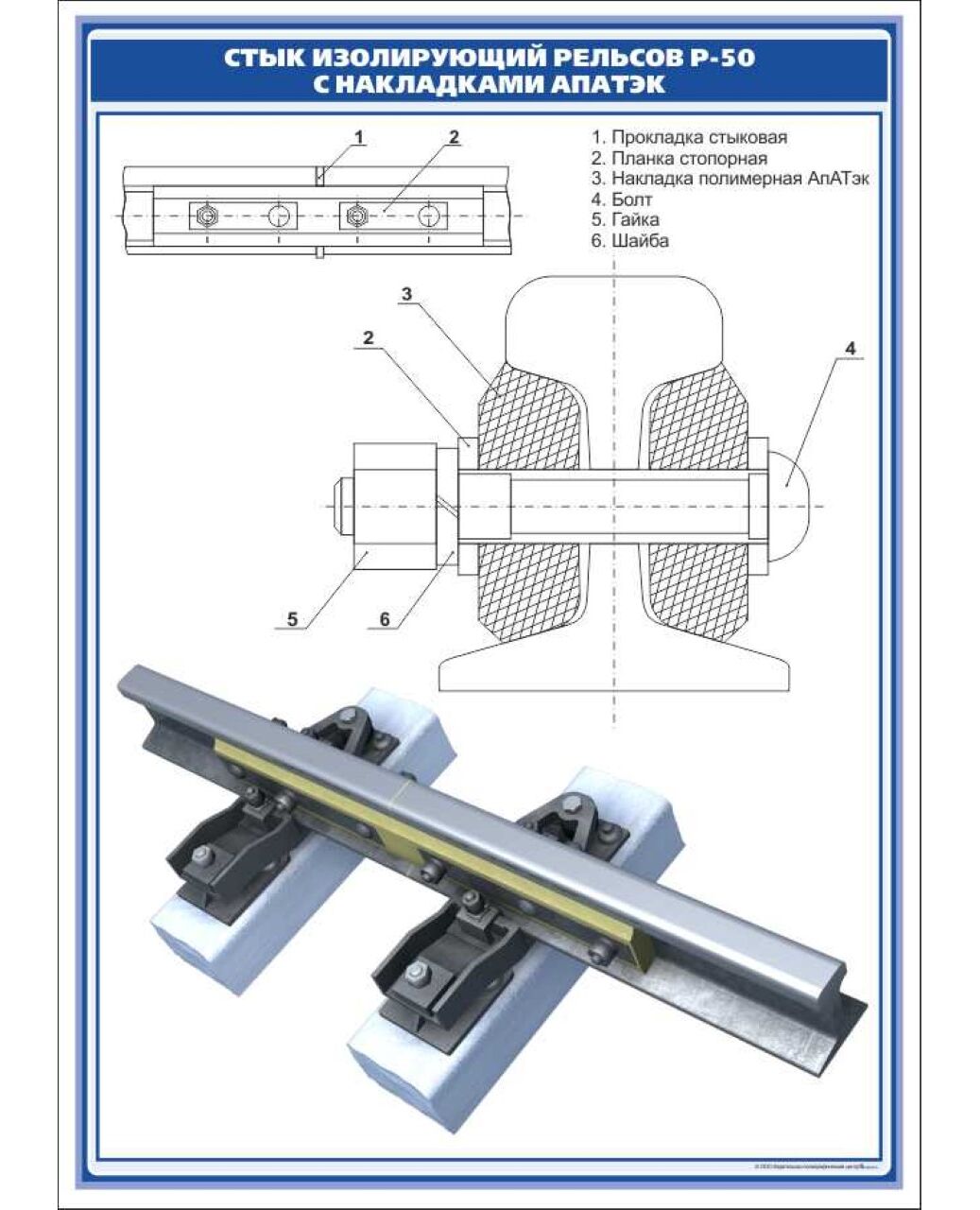 Плакат: Стык изолирующий с накладками АпАТэк (600 х 900 мм, ламинированный, с пластиковым профилем и стальным крючком)