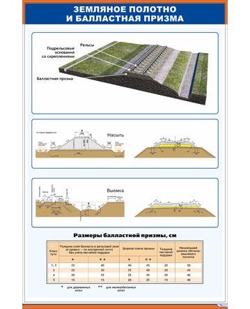 Плакат: Земляное полотно и балластная призма (600 х 900 мм, ламинированный, с пластиковым профилем и крючком)