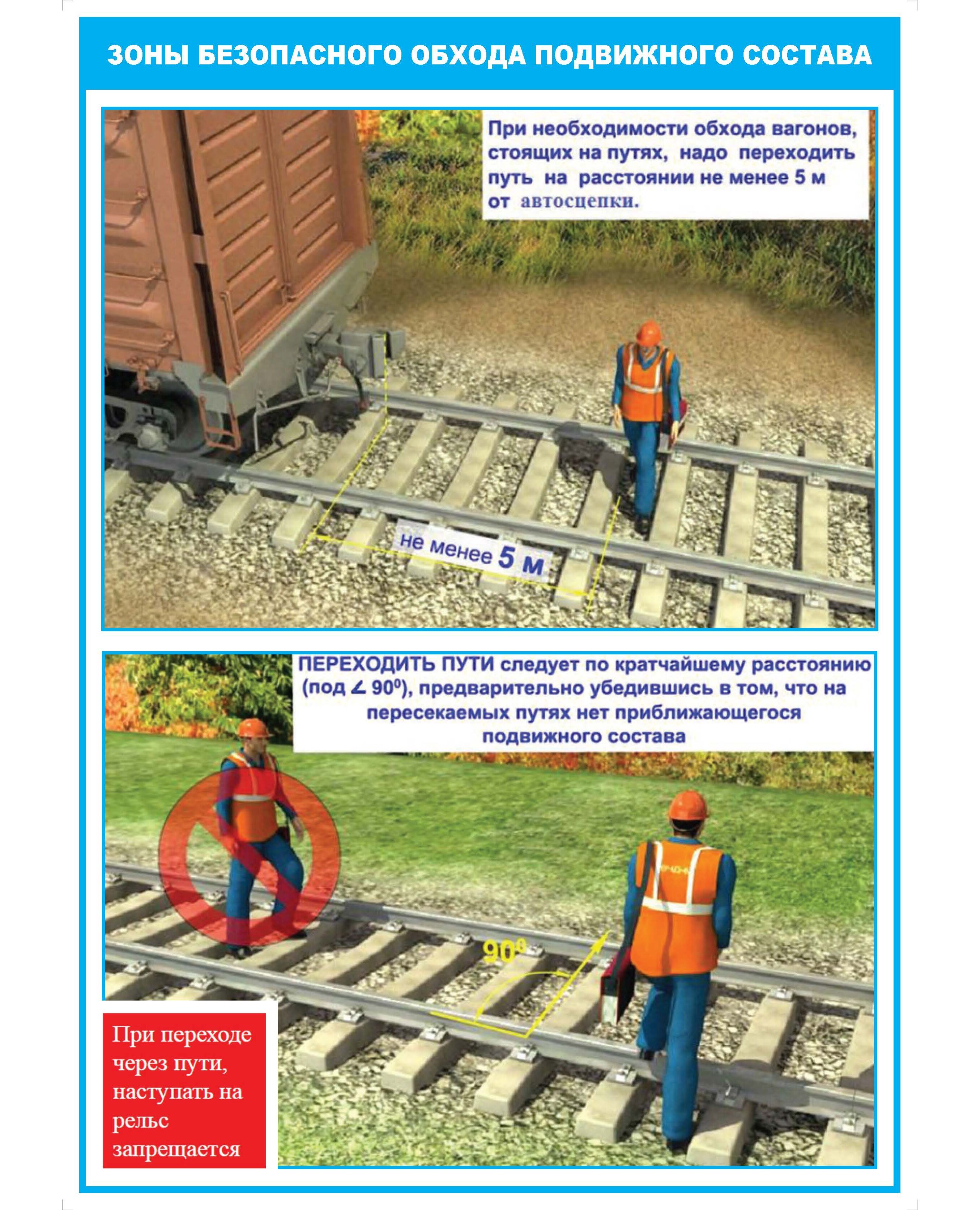 Плакат: Зоны безопасного обхода подвижного состава (формат А2, ламинированный)