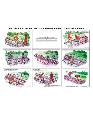 Плакат: Выправка пути регулировочными прокладками (ламинированный) Формат А1 Утв. Гл. управлением путей МПС СССР (Согласовано с Гл. тех. управлением МПС СССР 1982 г.)