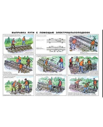 Плакат: Выправка пути с помощью электрошпалоподбоек (ламинированный) Формат А1