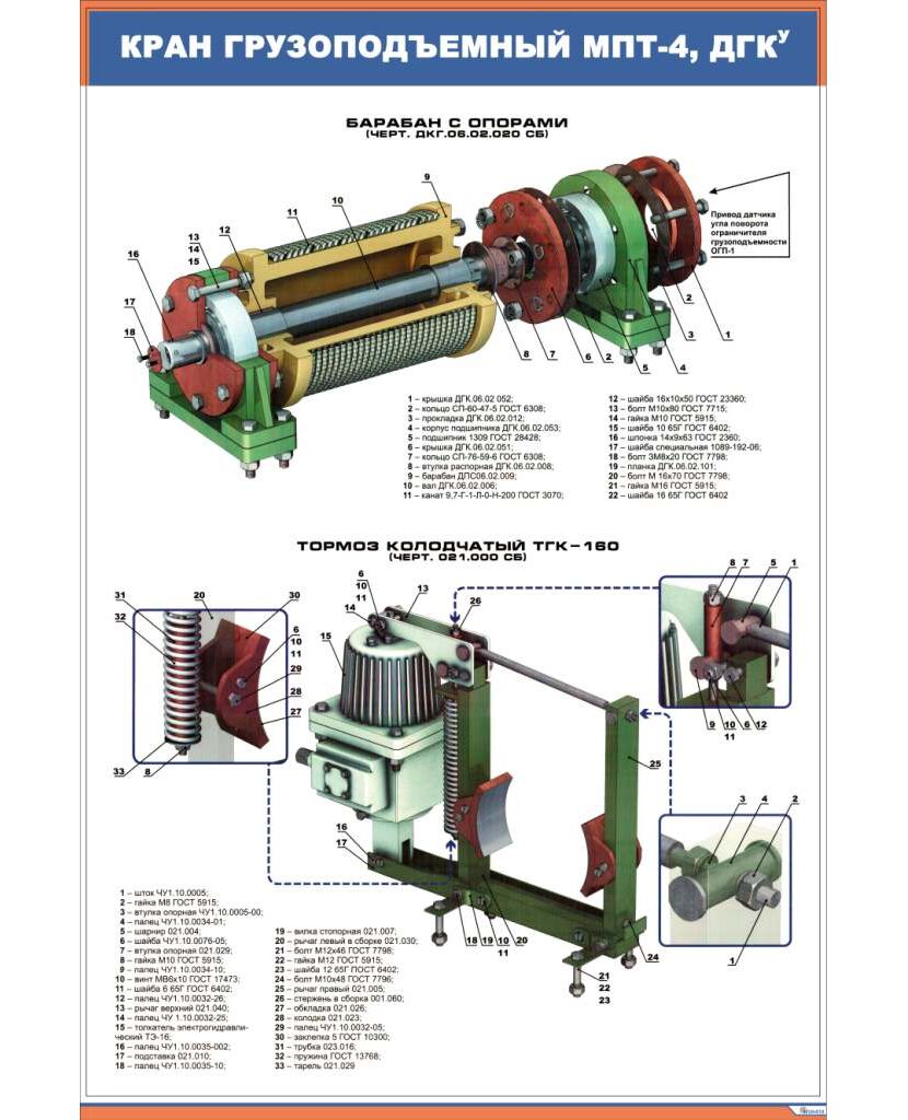 Плакат: Кран грузоподъемный МПТ-4, ДКГУ (600 х 900 мм, ламинированный, с пластиковым профилем и крючком)