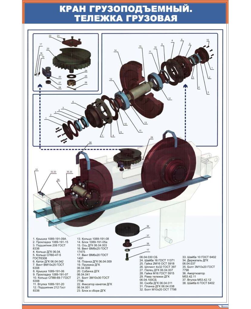 Плакат: Кран грузоподъемный. Тележка грузовая (600 х 900 мм, ламинированный, с пластиковым профилем и крючком)