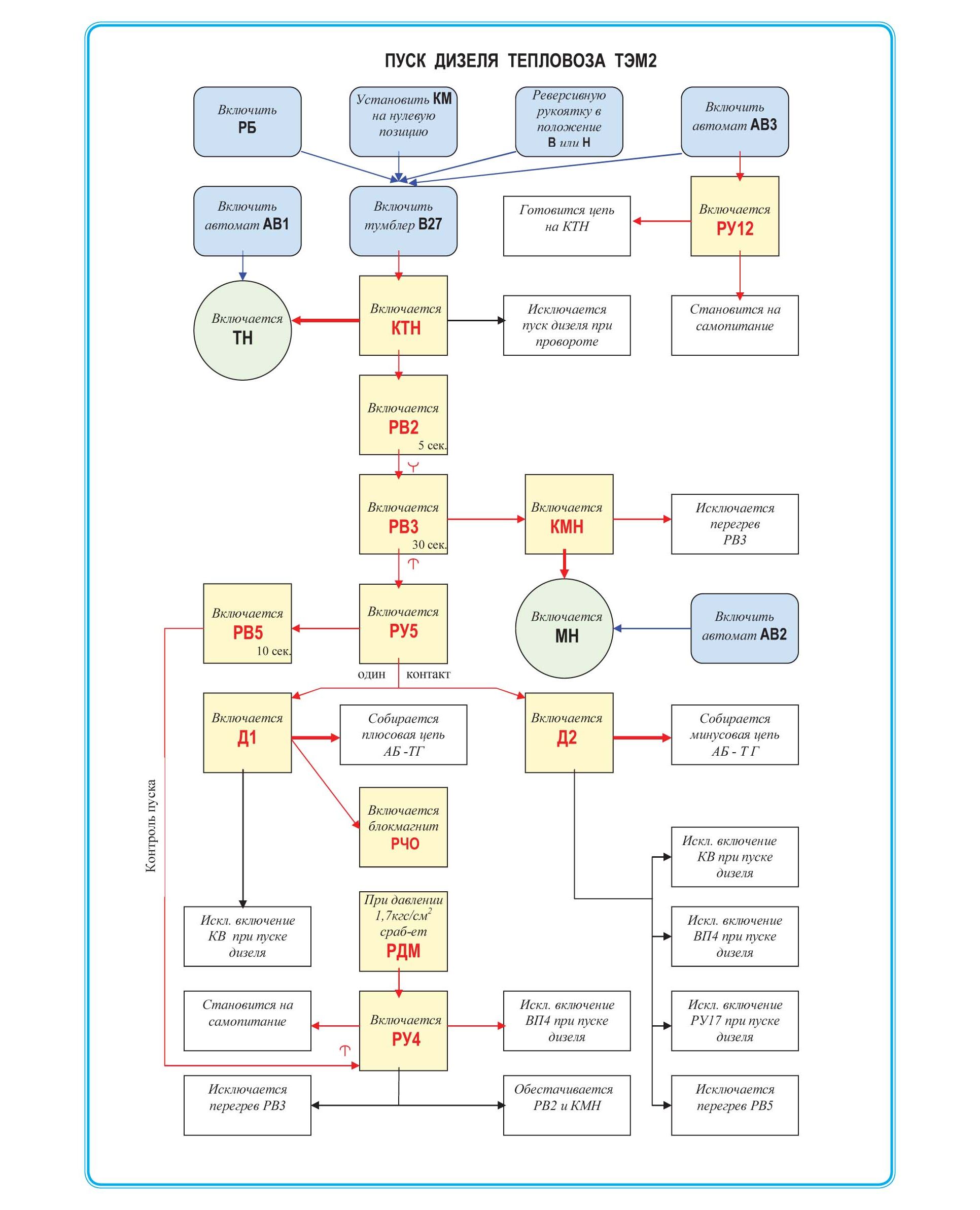 Плакат: Пуск дизеля тепловоза ТЭМ2 (формат А1, ламинированный)