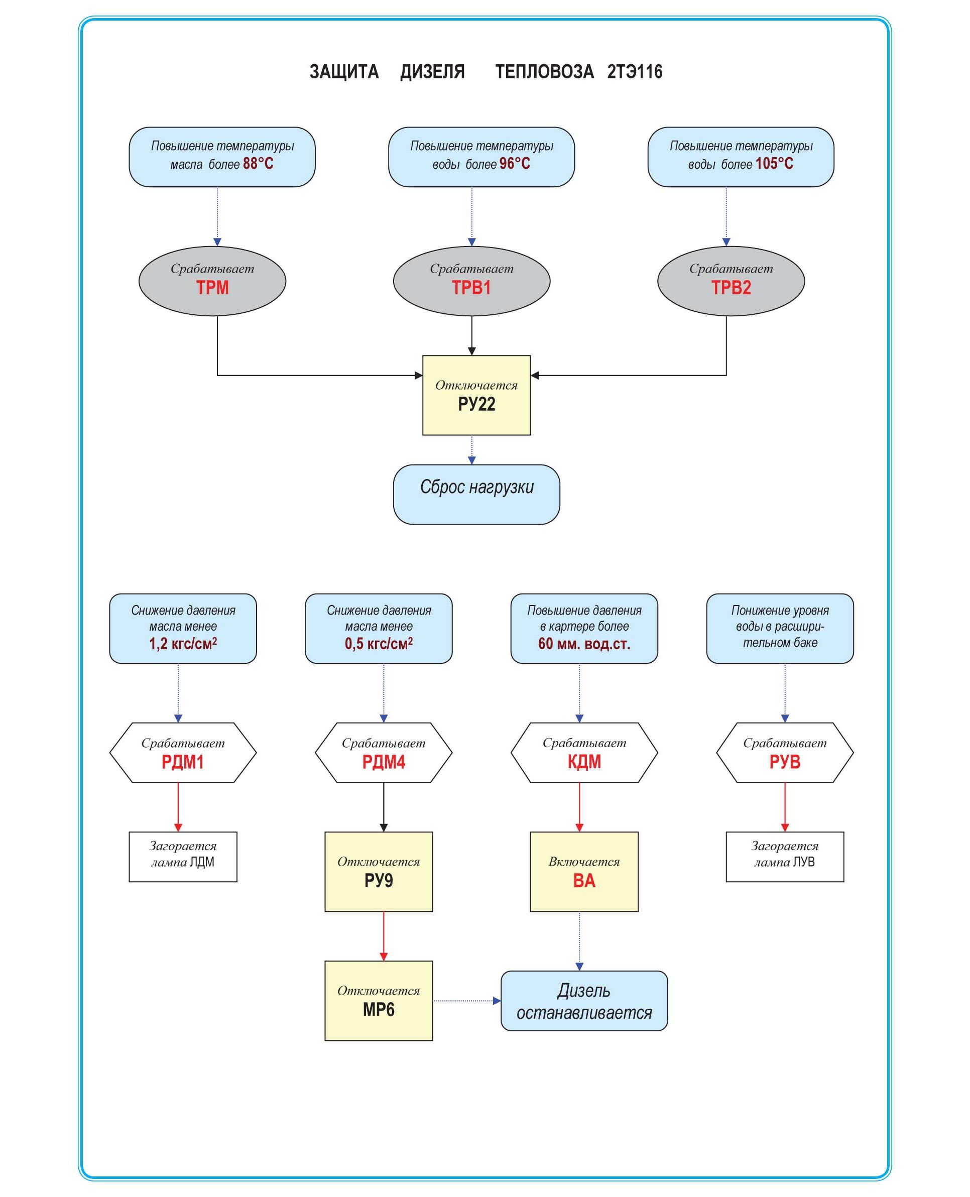 Плакат: Защита дизеля тепловоза 2ТЭ116. (формат А1, ламинированный)