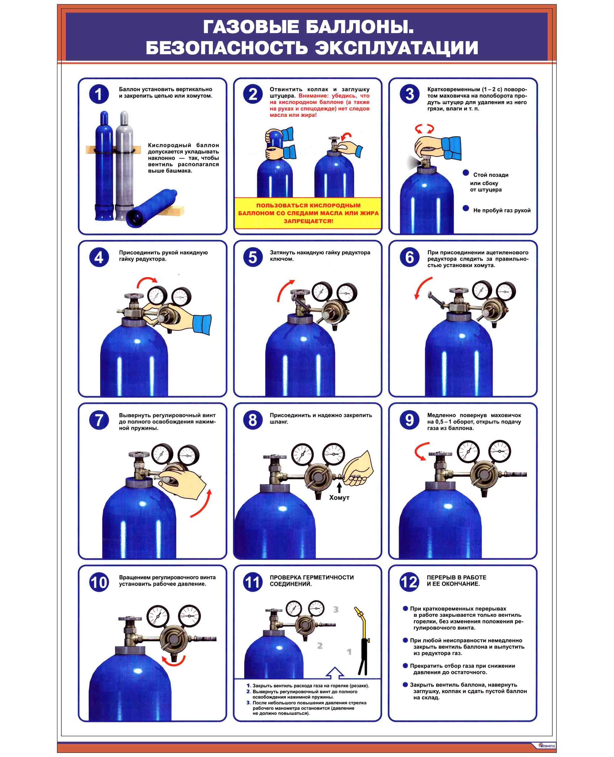 Плакат: Газовые баллоны. Безопасность эксплуатации (600 х 900 мм, ламинированный, с пластиковым профилем и стальным крючком)