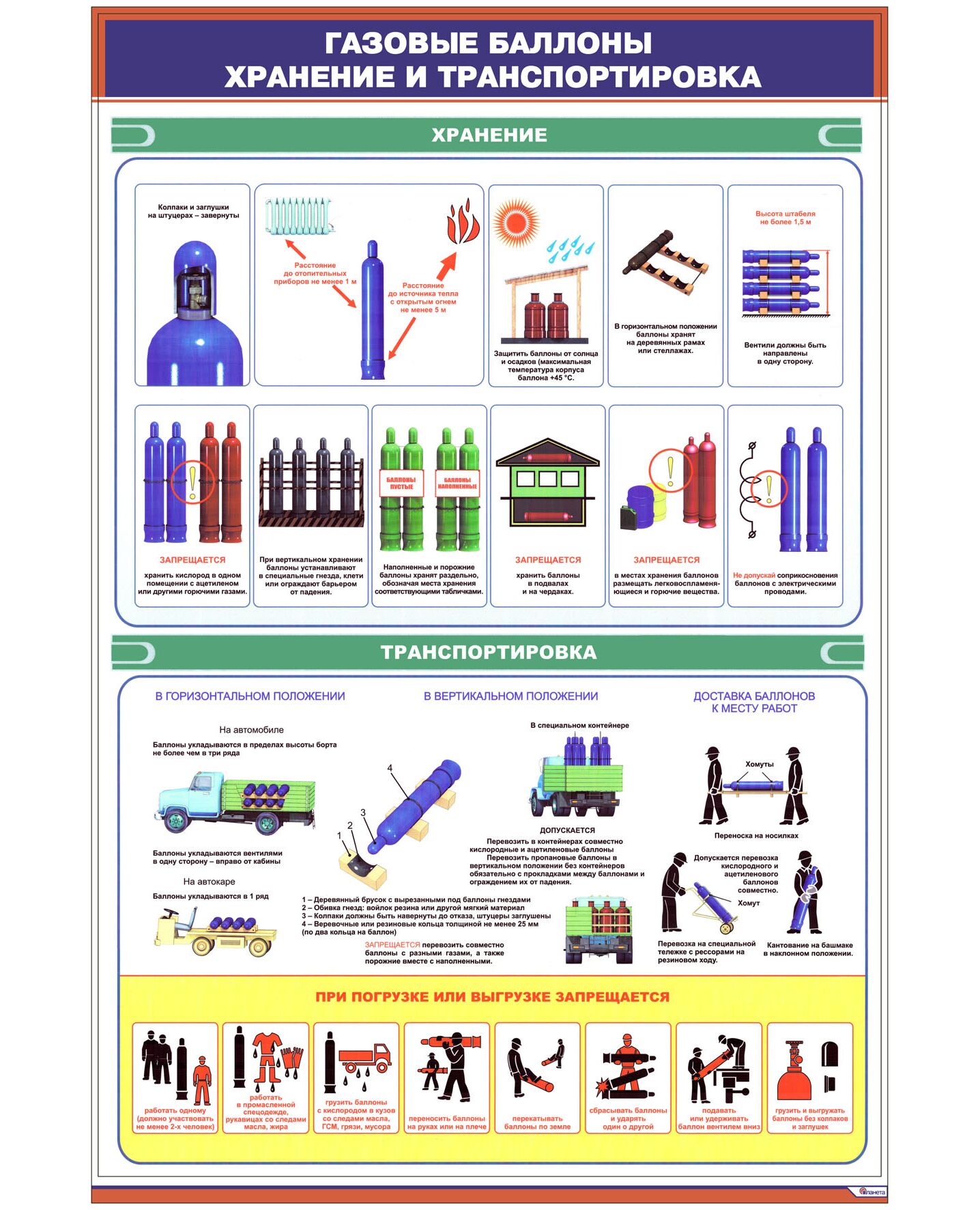 Плакат: Газовые баллоны. Хранение и транспортировка (600 х 900 мм, ламинированый, с пластиковым профилем и стальным крючком)