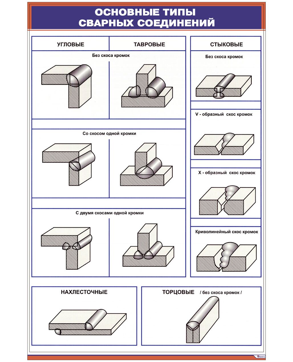 Плакат: Основные типы сварных соединений (600х900 мм, ламинированый, с пластиковым профилем и стальным крючком)