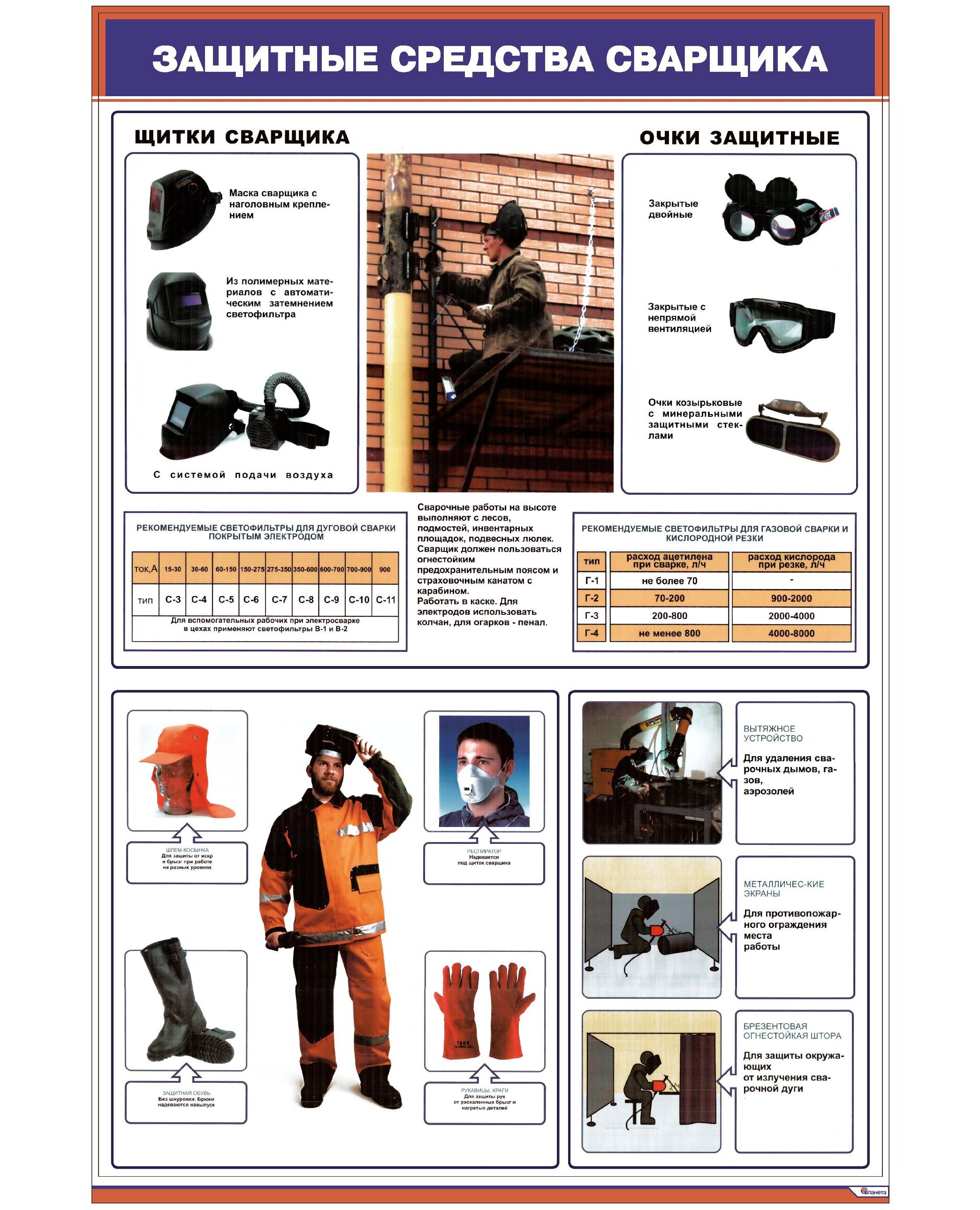 Плакат: Защитные средства сварщика (600х900 мм, ламинированый, с пластиковым профилем и стальным крючком)