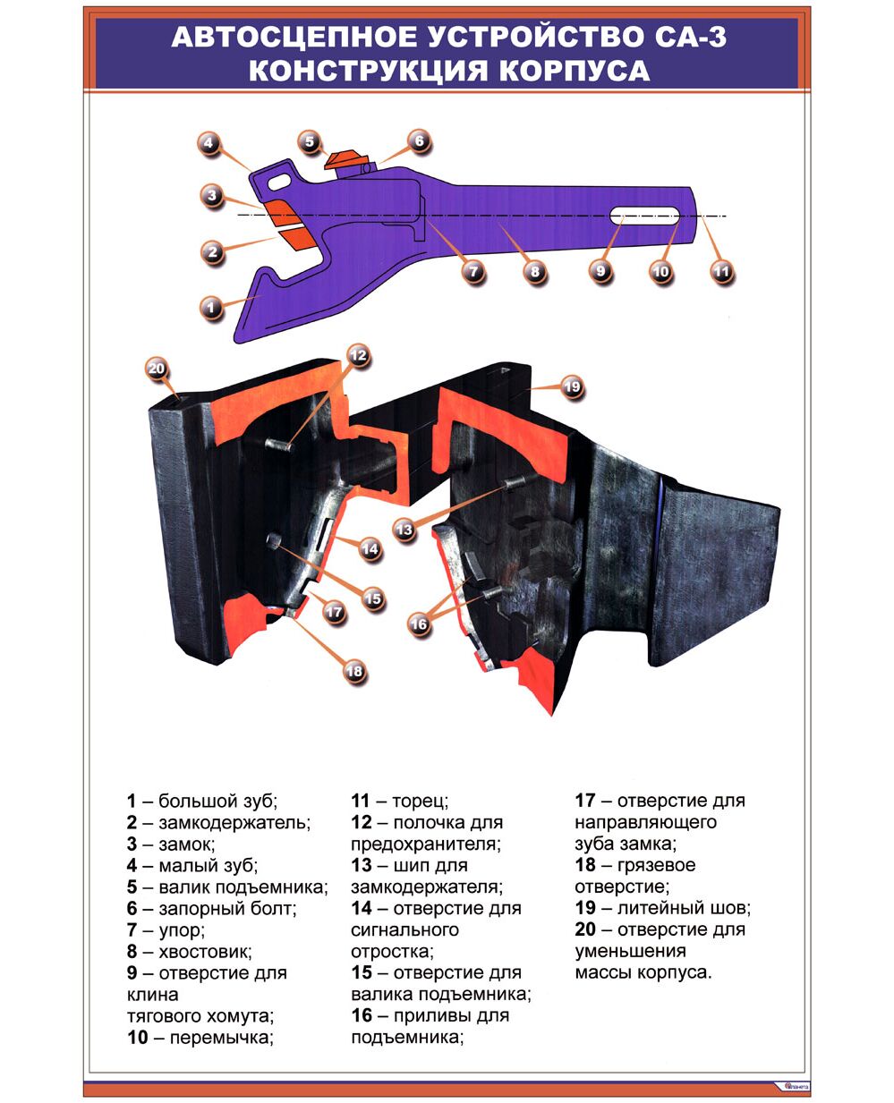 Автосцепное устройство СА-3. 1. Конструкция корпуса (600 х 900 мм, ламинированный, с пластиковым профилем и стальным крючком)