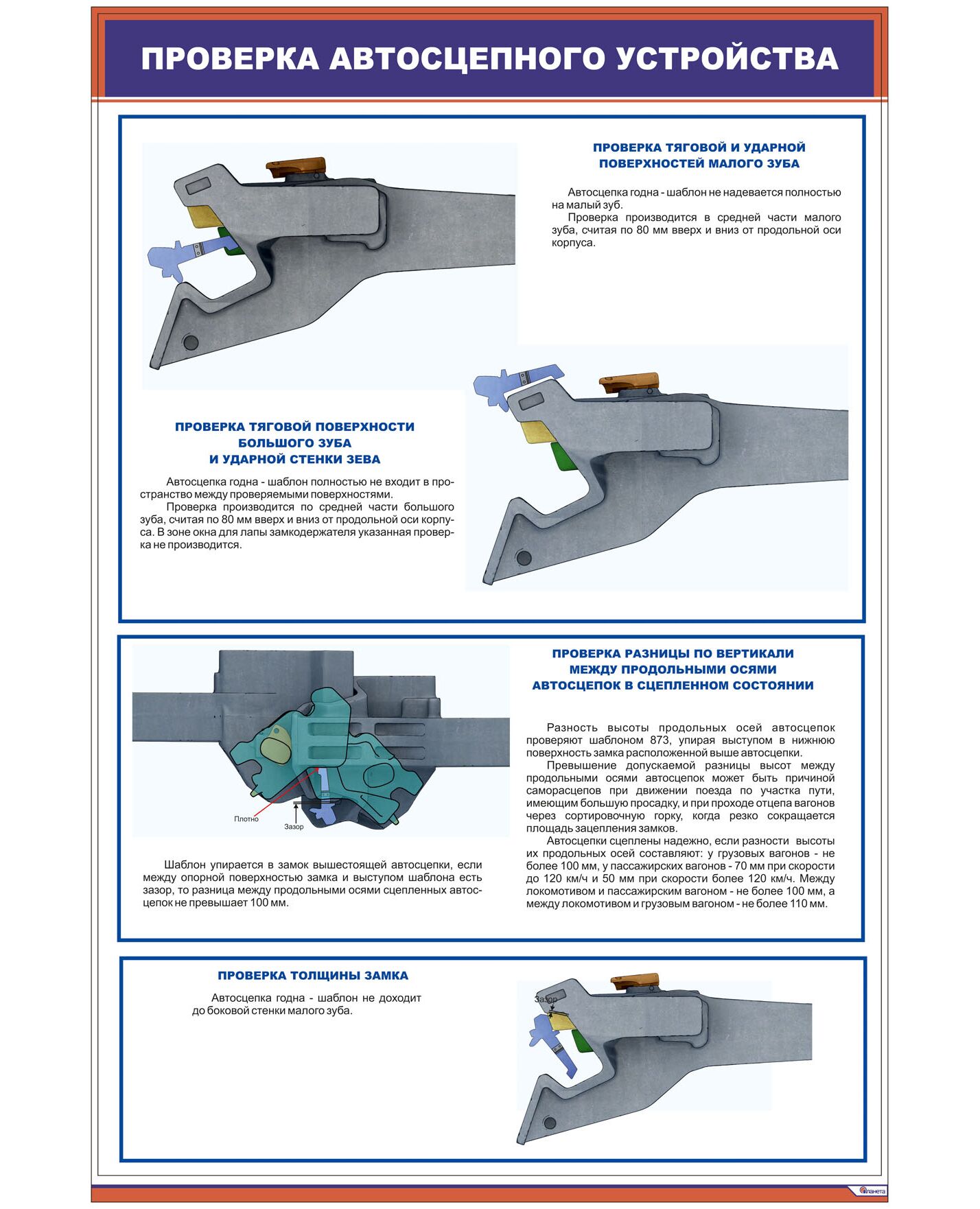 Проверка автосцепного устройства (600 х 900 мм, ламинированный, с пластиковым профилем и стальным крючком)