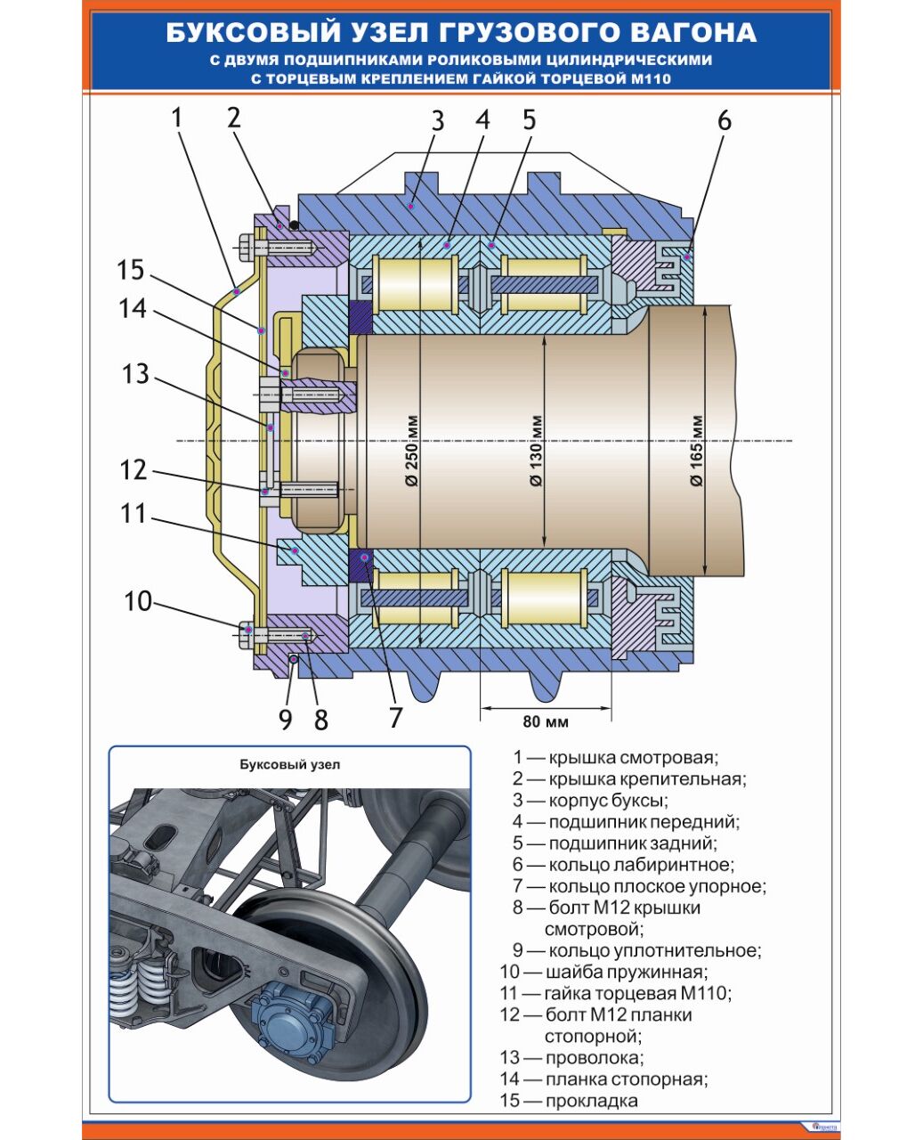Буксовый узел грузового вагона, (600 х 900 мм, ламинированный, с пластиковым профилем и стальным крючком)