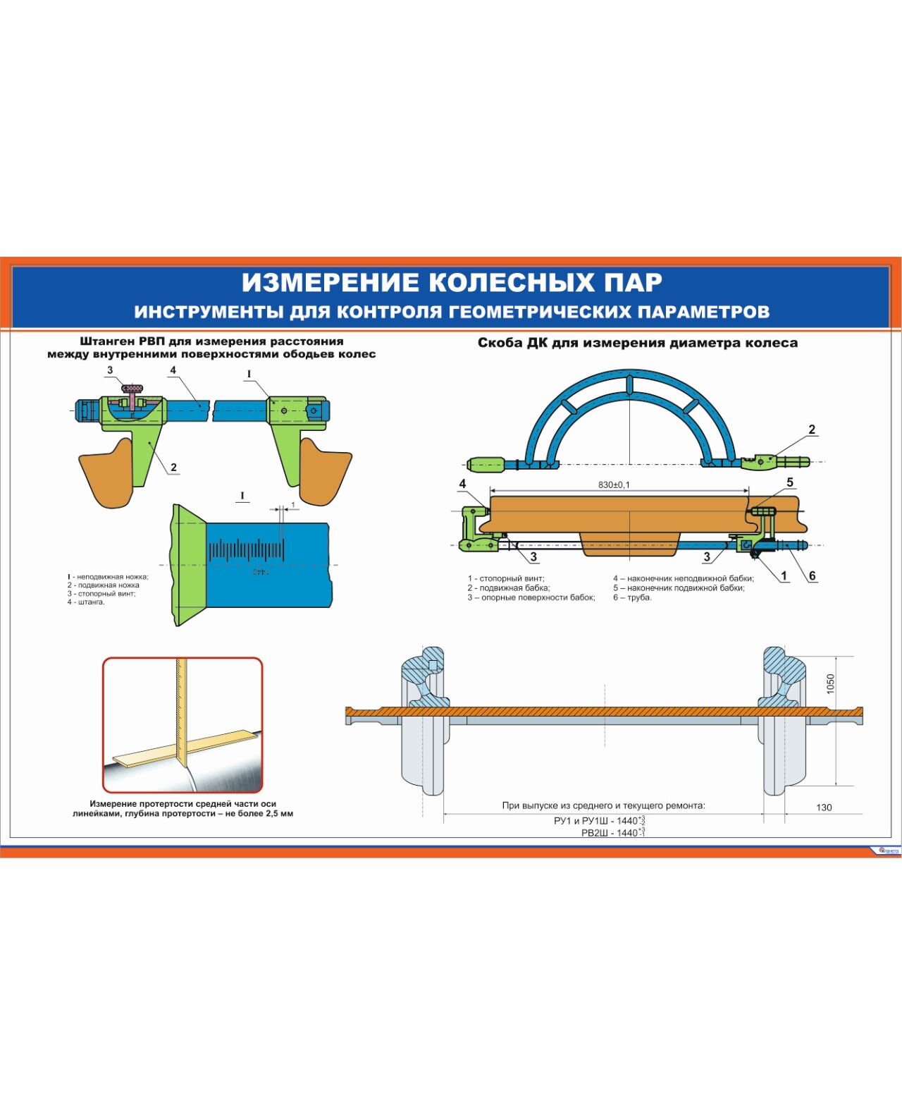 Измерение колесных пар. Измерительный инструмент. Скоба ДК и штанген РВП (600 х 900 мм, ламинированный, с пластиковым профилем и стальным крючком)