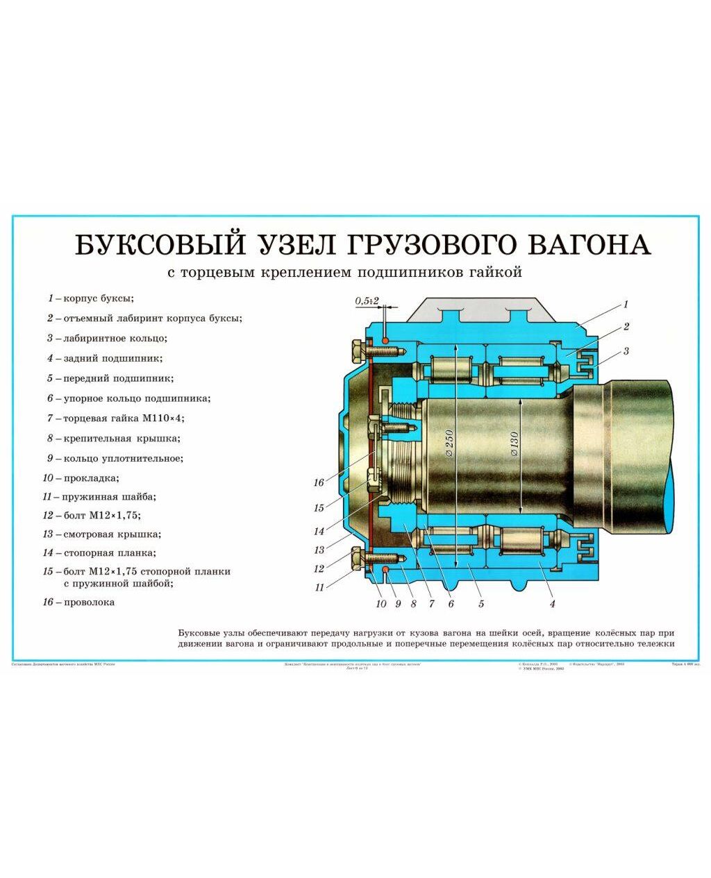 Плакат: Буксовый узел грузового вагона (с торцевым креплением подшипников гайкой) (лист 6). формат А1, ламинированный.