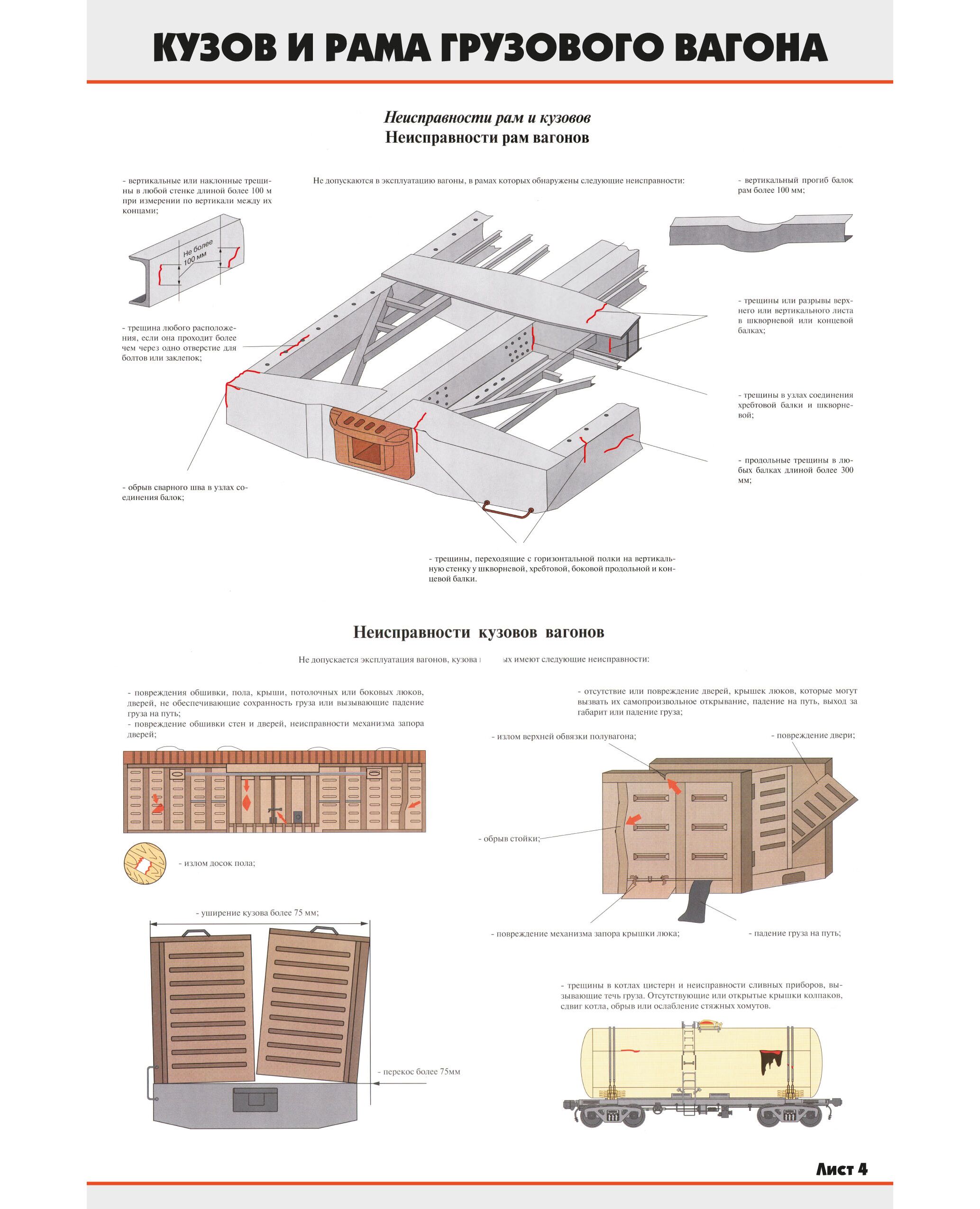 Комплект плакатов: Кузов и рама грузового вагона (4 листа) (600 х 900 мм, ламинированный, с пластиковым профилем и крючком)