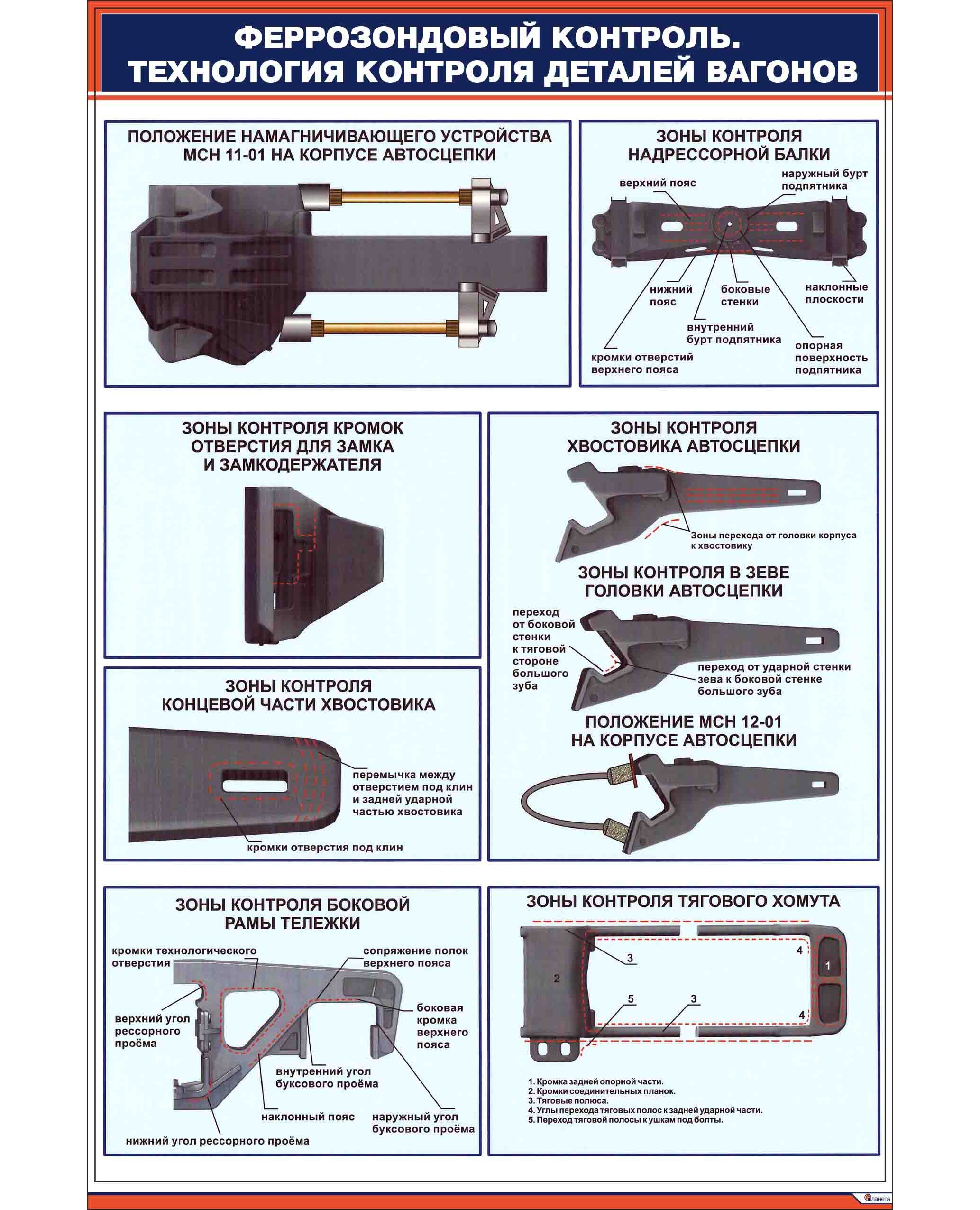 Плакат: Феррозондовый контроль. Технология контроля деталей вагонов (600 х 900 мм, ламинированный, с пластиковым профилем и стальным крючком)