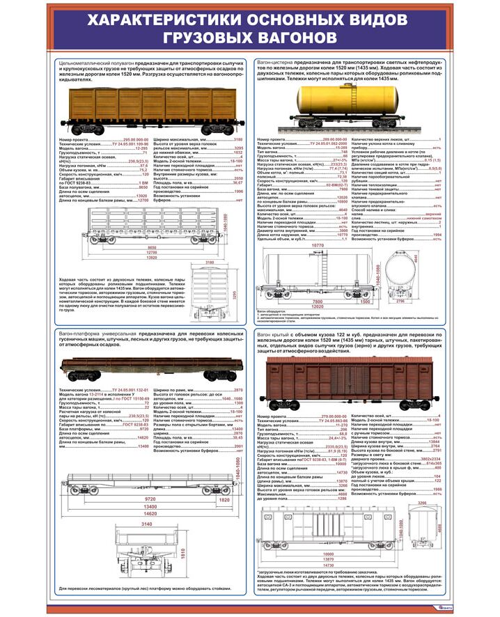 Плакат: Характеристики основных видов грузовых вагонов (600 х 900 мм, ламинированный, с пластиковым профилем и стальным крючком)