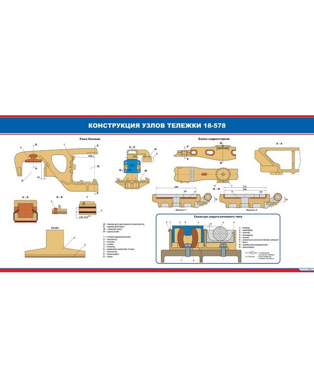 Плакат: Конструкция узлов тележки 18-578 (900 х 600 мм, ламинированный, с пластиковым профилем и крючком)