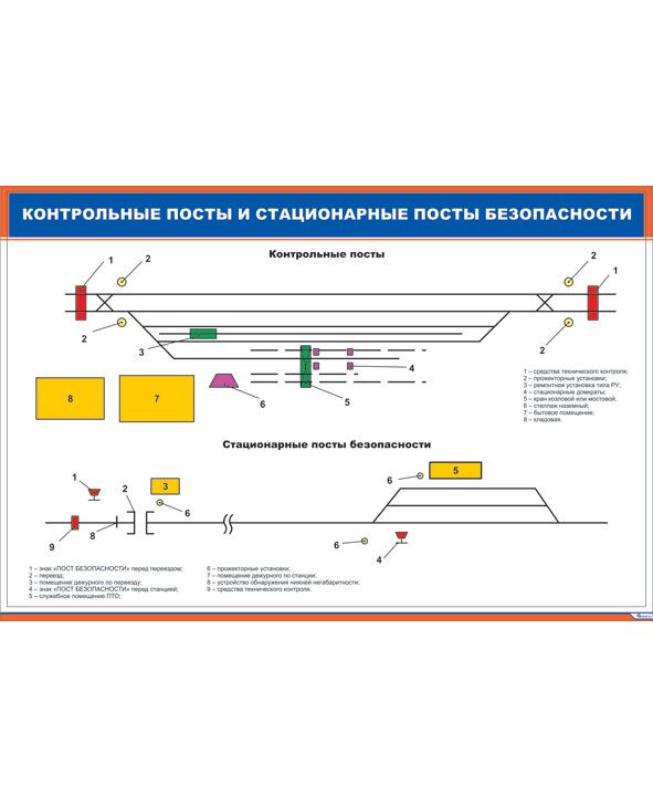 Плакат: Контрольные посты и стационарные посты безопасности (900 х 600 мм, ламинированный, с пластиковым профилем и стальным крючком)