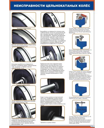 Плакат: Неисправности цельнокатных колес (600 х 900 мм, ламинированный, с пластиковым профилем и стальным крючком)
