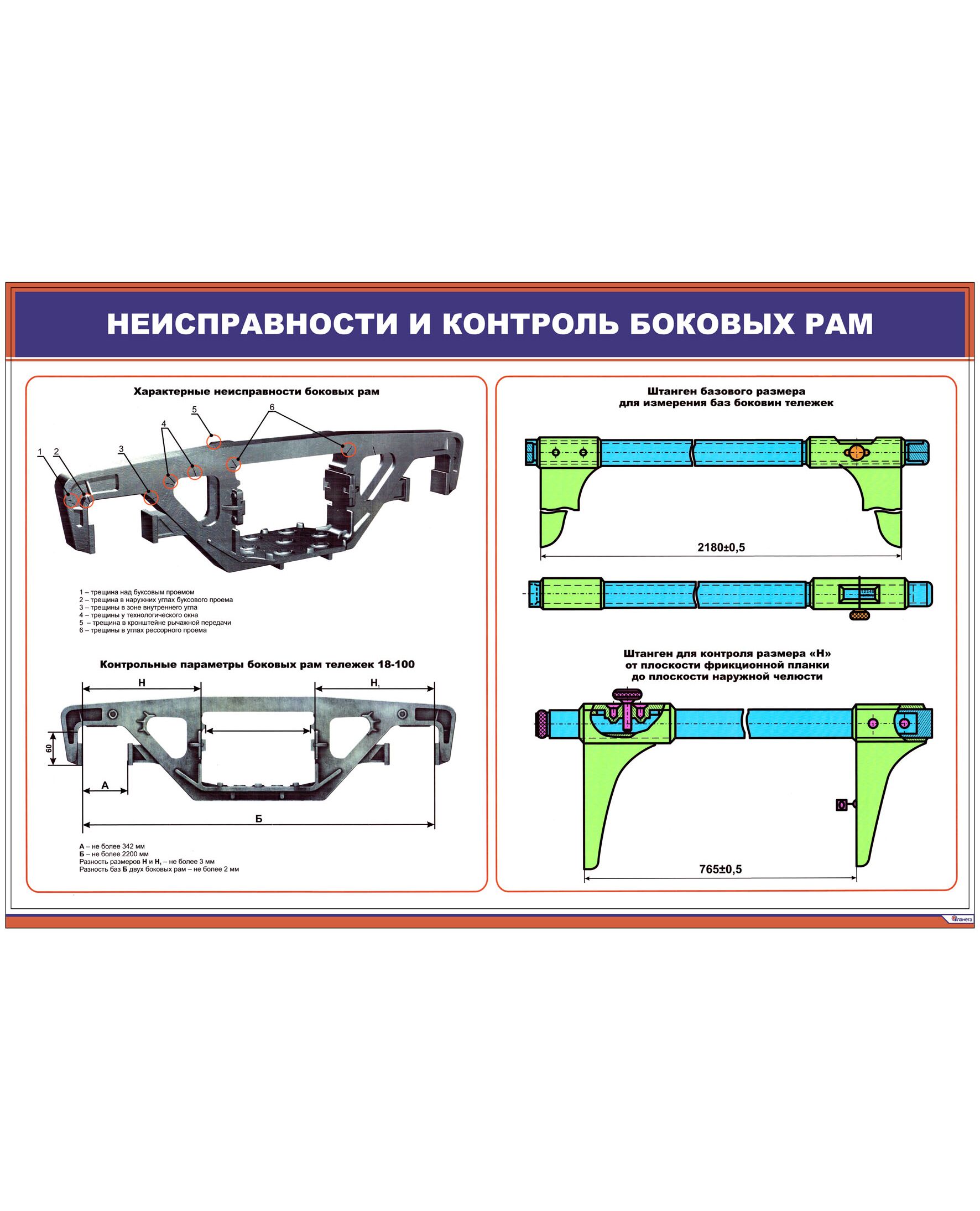 Плакат: Неисправности и контроль боковых рам (600 х 900 мм, ламинированный с пластиковым профилем стальным крючком)