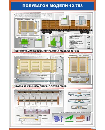 Плакат: Полувагон модели 12-753 (600 х 900 мм, ламинированный, с пластиковым профилем и стальным крючком)