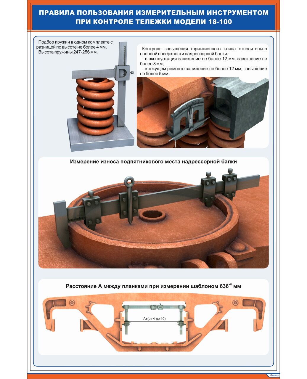 Плакат: Правила пользования измерительным инструментом при контроле тележки модели 18-100 (2) (600х900 мм, ламинированый, с пластиковым профилем и стальным крючком)