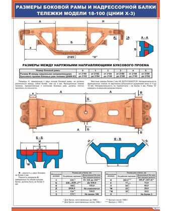 Плакат: Размеры боковой рамы и надрессорной балки тележки модели 18-100 (ЦНИИ Х-3) (600 х 900 мм, ламинированный, с пластиковым профилем и стальным крючком)