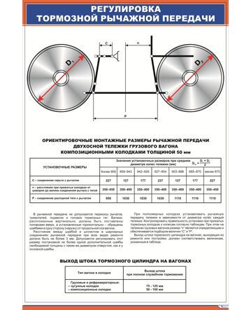 Плакат: Регулировка тормозной рычажной передачи (600 х 900 мм, ламинированный, с пластиковым профилем и стальным крючком)