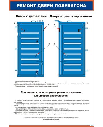 Плакат: Ремонт двери полувагона (600 х 900 мм, ламинированный, с пластиковым профилем и стальным крючком)