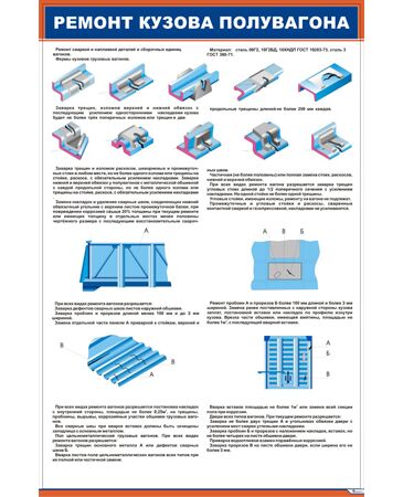 Плакат: Ремонт кузова полувагона-1 (600х900 мм, ламинированый, с пластиковым профилем и стальным крючком)