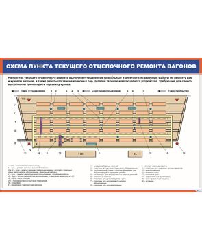 Плакат: Схема пункта текущего отцепочного ремонта вагонов (600 х 900 мм, ламинированный, с пластиковым профилем и стальным крючком)