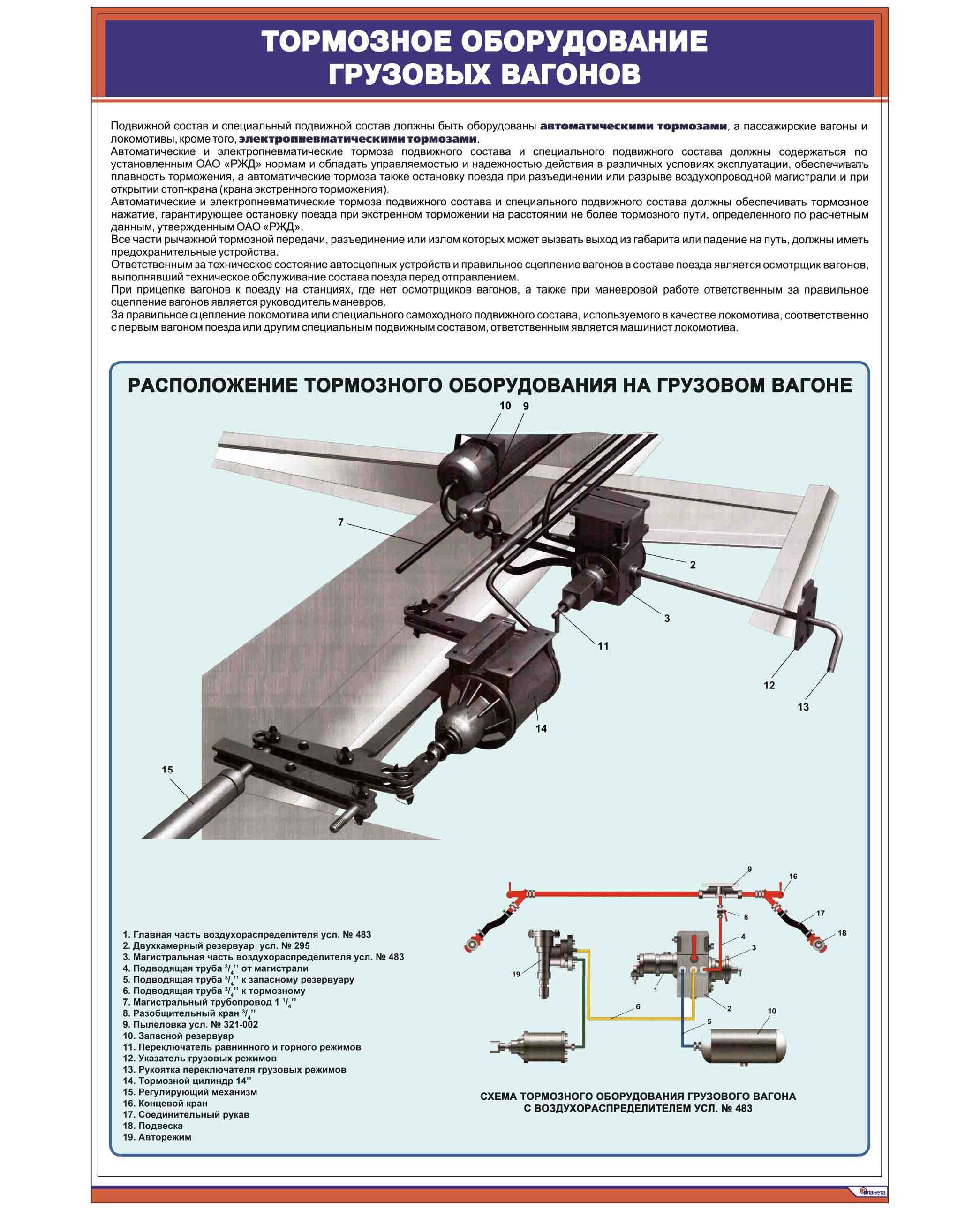 Плакат: Тормозное оборудование грузовых вагонов (600 х 900 мм, ламинированный, с пластиковым профилем и стальным крючком)