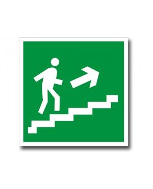 Направление к эвакуационному выходу по лестнице вверх направо (наклейка)200*200 мм