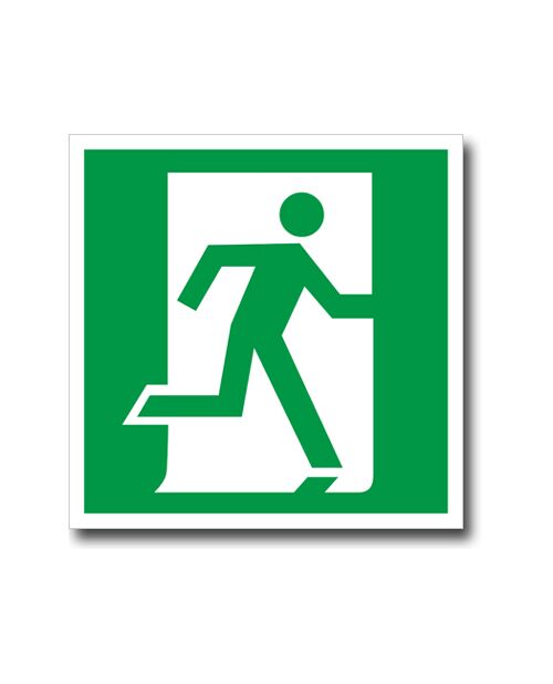Над дверями (или на дверях) эвакуационных выходов, открывающихся с правой стороны. На стенах помещений вместе с направляющей стрелкой для указания направления движения к эвакуационному выходу