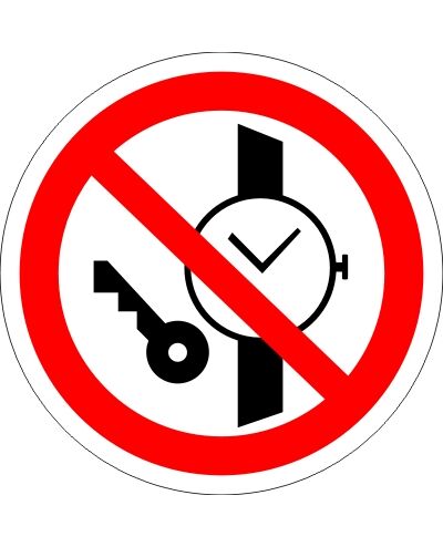 Запрещается иметь при (на) себе металлические предметы (часы и т.п.) (пластик) 200*200 мм