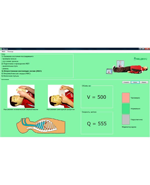 вдуваемого воздуха при ИВЛ, анимационной обучающей